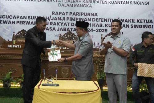 Senin, 09-09-2024 - 21:29:15 WIB Mediasindonews.com I Teluk Kuantan - Bupati Kuantan Singingi (Kuansing) Dr. H. Suhardiman Amby, MM menghadiri Rapat Paripurna Dewan Perwakilan Rakyat Daerah (DPRD) Kuansing dalam rangka Pengucapan Sumpah/ Janji Anggota DPRD Kuansing masa jabatan 2024-2029.