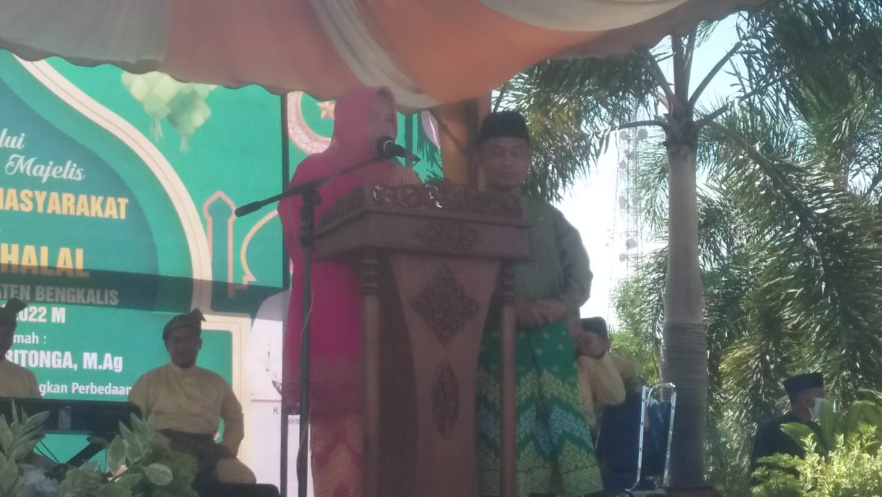 Mediasindonews.com | Bengkalis - Bupati Bengkalis Kasmarni menyapa segenap yang menghadirin di lapangan tugu Kota Bengkalis dari mulai anggota DPRD, semua kepala Dinas se-Kabupaten, Camat se-Kabupaten Bengkalis tokoh adat, tokoh masyarakat, para guru-guru, para ulama pembina pesantren, para rekan media, encik- encik dan puan-puan Bupati Bengkalis kasmarni sangat menghormatin dengan menyapa di hadapan hadirin dengan ramah tamahnya dalam rangka acara halal bilhalal di Kabupaten