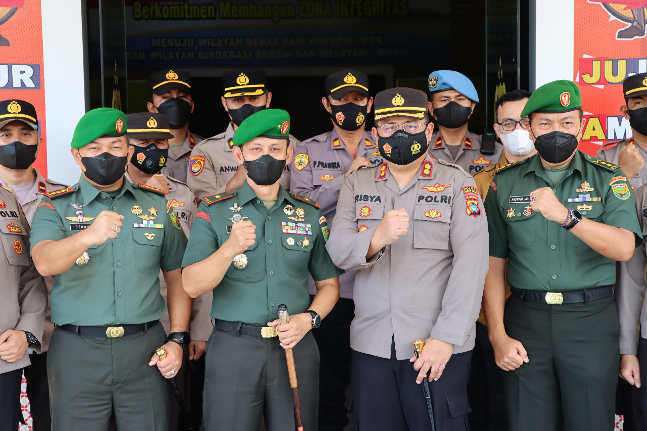 Mediasindonews.com | Koba - Kapolres Bangka Tengah (Bateng), AKBP Moch Risya Mustario sambut kedatangan Danrem 045/Garuda Jaya (Gaya) Babel, Brigjend Ujang Darwis."Alhamdulillah di bulan Ramadan 1443 H ini, kami berkesempatan menyambut hangat kedatangan Danrem 045/Gaya Babel bersama jajarannya," kata AKBP Risya, Kamis (14/04/2022) di Mapolres Bateng.Dalam kegiatan silaturahmi itu, Risya mengaku mengenal sapa para Kasat, Kabag dan Kapolsek wilayah hukum Polres Bateng. Begitupun Danrem 045/Gaya