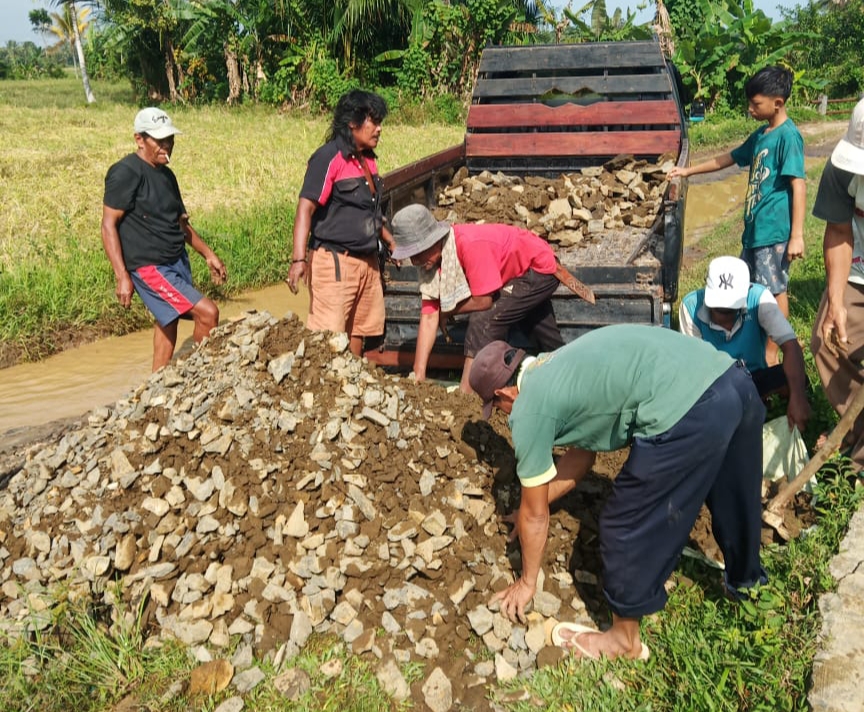 Warga Patungan Beli Batu Untuk Perbaiki Jalan Menuju Desa Bulagor