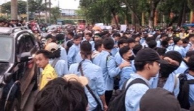 Massa yang datang dari mahasiswa Universitas Riau (UNRI), Universitas Lancang Kuning (UNILAK), Universitas Islam Riau (UIR) dan massa HMI menggeruduk gerbang DPRD Riau dan disambut barikade keamanan polisi Polresta Pekanbaru di bantu Polda Riau.