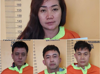 Empat pelaku ditangkap ada Ari Wijaya (38), Armadi (47), Anwar (48) dan Melia Marwati. Keempatnya ditangkap polisi di sebuah hotel di Pekanbaru saat persiapan beraksi.