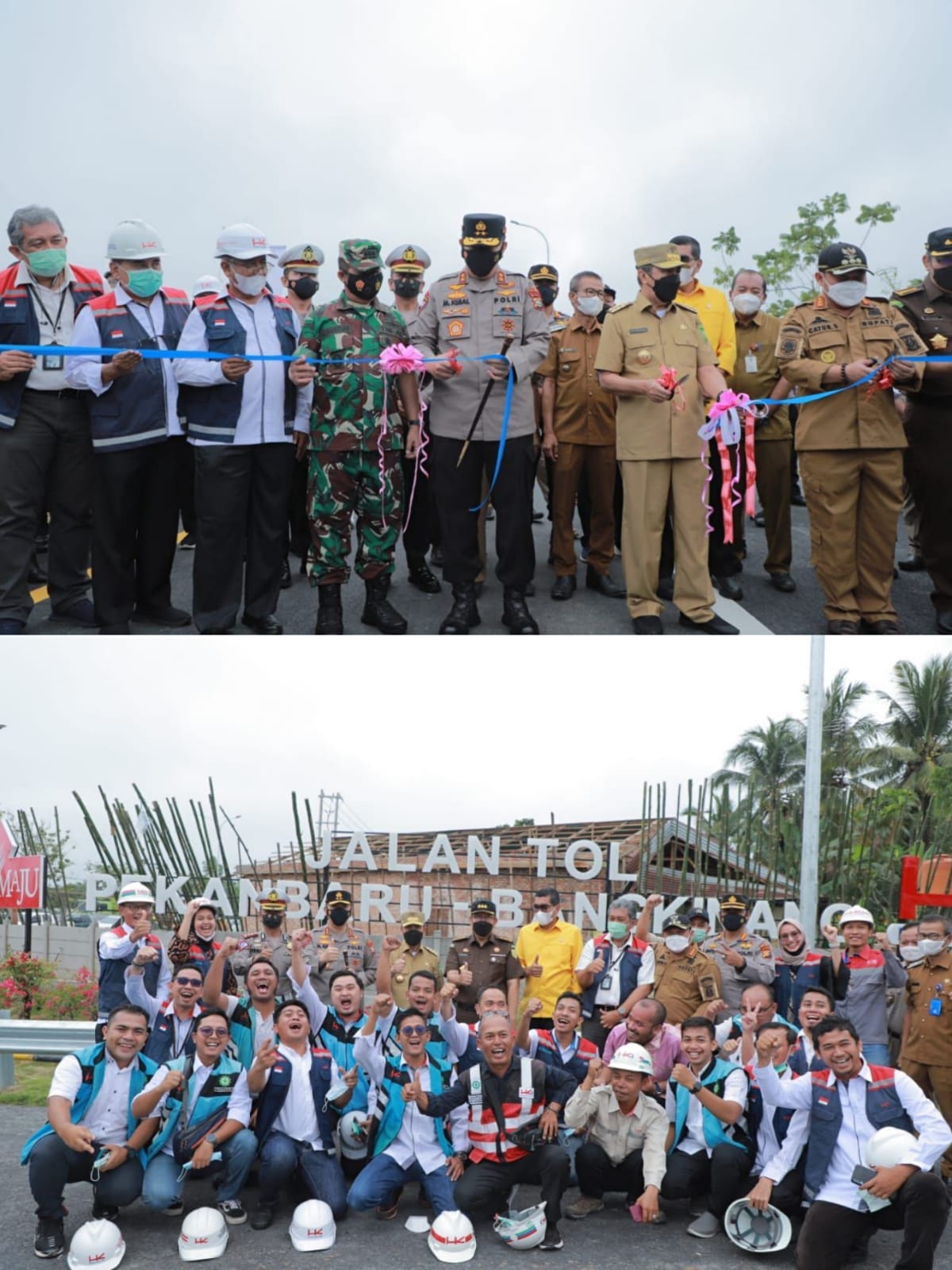Mediasindonews.com | PEKANBARU - Jalan Tol ruas Pekanbaru Bangkinang dibuka sementara fungsional secara seremoni untuk mendukung kelancaran arus mudik Lebaran tahun 2022.