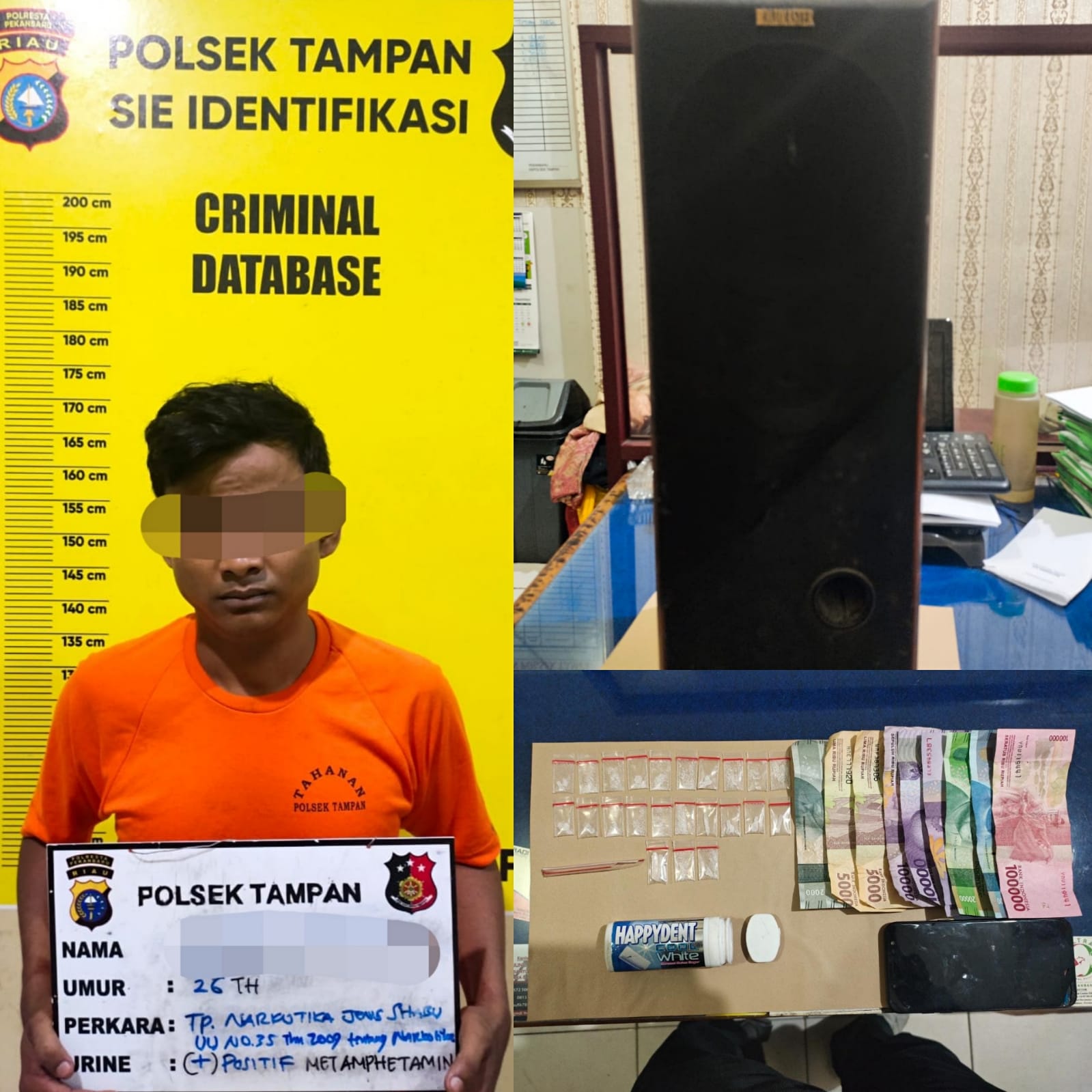 Polsek Tampan Tangkap Pelaku Tindak Pidana Narkotika 23 paket Jenis Shabu Siap Edar