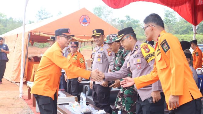 Hadir Bupati diwakili Pj Sekdakab dr. H. Fahdiansyah, Kalaksa BPBD Yulizar, Kadis Perhubungan Hendri, Kapolres AKBP Pangucap Priyo Soegito, Pabung Kodim 0302 Inhu-Kuansing Kapten Inf Legimin, Kapusdalops PB/Kabid Kedaruratan Logistik Adi Chandra Lukita, Kabag Ops Polres Kompol