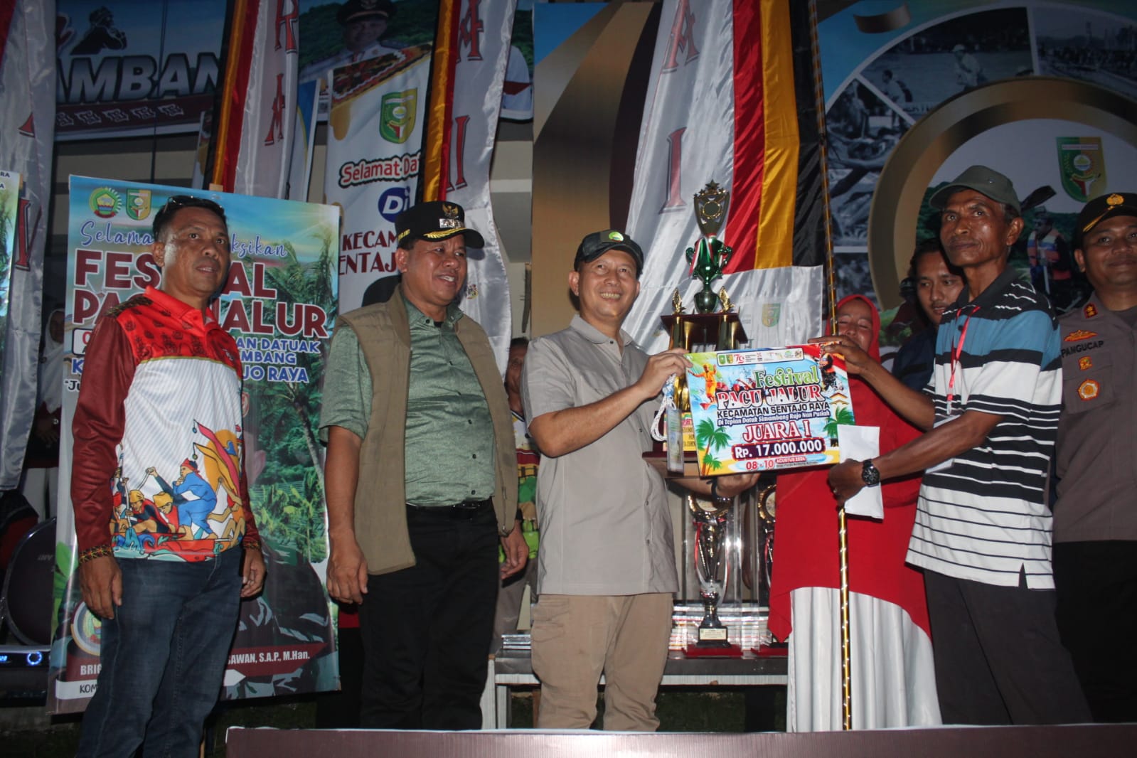 Sentajo... Danrem 031 Wira Bima , Brigjend TNI Dani Racka mengaku puas dengan pelaksanaan Pacu Jalur Piala Bergilir Danrem 031 WB di Tepian Datuk Simambang Desa Pulau Komang Sentajo, yang di tutup 10/8/25 petang.