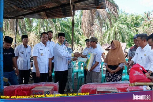 Bupati Rohil Afrizal Sintong S.IP Serahkan Bantuan kepada Masyarakat Pekerja Kayu yang Kehilangan Mata Pencaharian