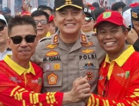 Mediasindonews.com I Rohil – Momen unik terjadi saat festival Bakar Tongkang di Rohil. Kapolda Riau, Irjen Mohammad Iqbal mengajak Bupati Afrizal Sintong dan Wabup Sulaiman ‘salam damai’.