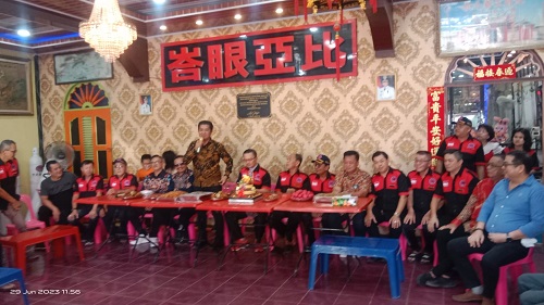 ROHIL (BAGANSIAPIAPI) - Tokoh Tionghua yang juga dewan pengawas Ikatan Media Online Indonesia, Andy Tjandra Setiadji menghadiri acara perayaan Hari Ulang Tahun tahun Yayasan Multi Marga Tionghua ke 23 tahun (YMMT), kamis, (29/06/2023).Perayaan HUT ke-23 Yayasan Multi Marga Tionghoa Indonesia (YMMT) ini ditandai dengan pemotongan kue tar dan membagikannya kepada seluruh pengurus yang turut ikut merayakan hari ulang tahun tersebut.Tampak hadir ketua yayasan Multi Marga Rohil, Rendy Gunawan,