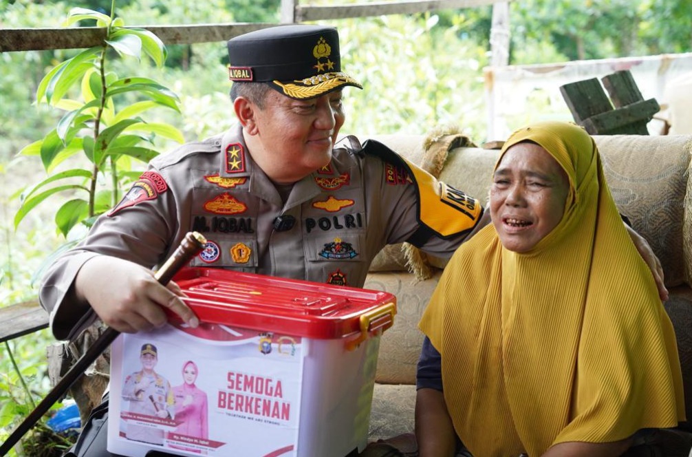 Mediasindonews.com | Dumai – Pada Jumat (12/1/24) Kepala Kepolisian Daerah (Kapolda) Riau, Irjen Pol Mohammad Iqbal, menciptakan momen mengharukan dalam kunjungan kerja di Dumai, saat bertemu seorang warga nenek Mariah(69) di Kecamatan Dumai Barat, Dumai, Didampingi oleh Ketua Bhayakari, Ny Nindya Iqbal, dan Kapolres Dumai, AKBP Dhovan Oktaviaton, Irjen Iqbal mengunjungi seorang nenek yang sedang mengalami sakit.