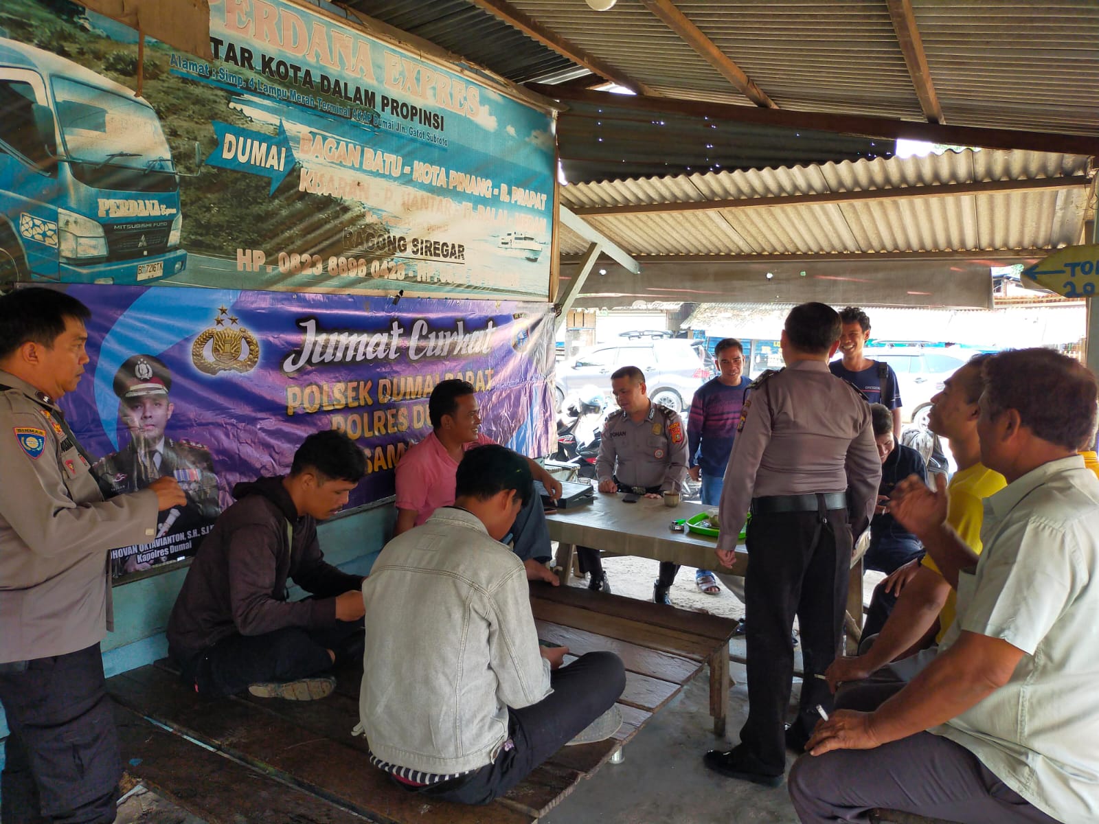Mediasindonews.com | Dumai - Polres Dumai beserta Polsek Jajaran Polres Dumai secara rutin melaksanakan kegiatan yang mengusung tema ‘Jum’at Curhat’ sebagai upaya untuk mempererat silaturrahmi, mengimplementasikan Polri hadir ditengah masyarakat serta menampung keluh kesah masyarakat untuk mengetahui situasi dan merespon persoalan-persoalan yang ada ditengah masyarakat, Jumat (3/11/2023) lalu bertempat di Loket Betahamu Trans Jalan Kelakap Tujuh RT. 016 Kelurahan Simpang Tetap