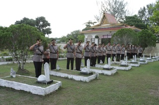 DUMAI - Dalam rangka Hari Bhayangkara Ke-77 Tahun 2023 yang akan diperingati pada 1 Juli 2023 mendatang, Polres Dumai menggelar Upacara Ziarah dan Tabur Bunga di Taman Makam Pahlawan Damai Sentosa Jalan Soekarno-Hatta Kelurahan Bukit Batrem Kecamatan Dumai Timur, Selasa (27/6/2023).