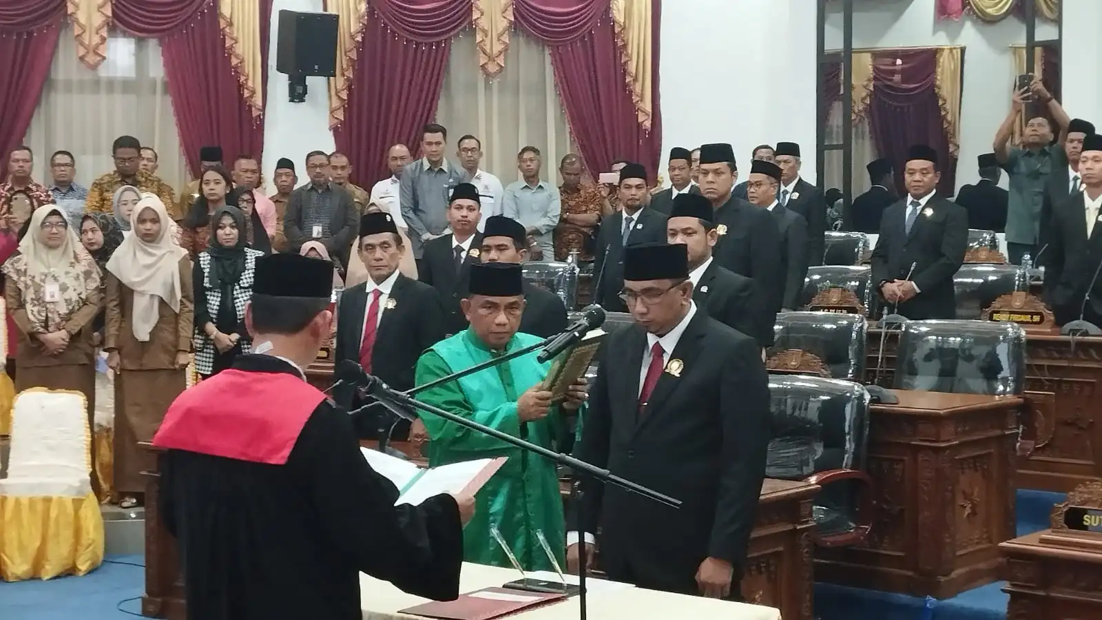 Sidang paripurna Pengucapan sumpah dan janji Wakil Ketua DPRD Dumai Bahari dipimpin Ketua DPRD Agus Miswandi didampingi Wakil Ketua H Johannes MP Tetelepta.