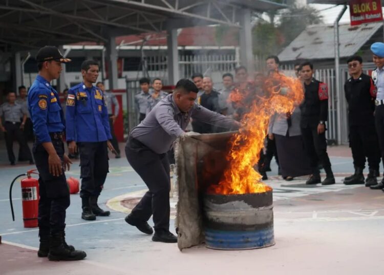 Mitigasi Bencana Kebakaran, Rutan Dumai Gandeng Damkar Dumai Gelar Simulasi