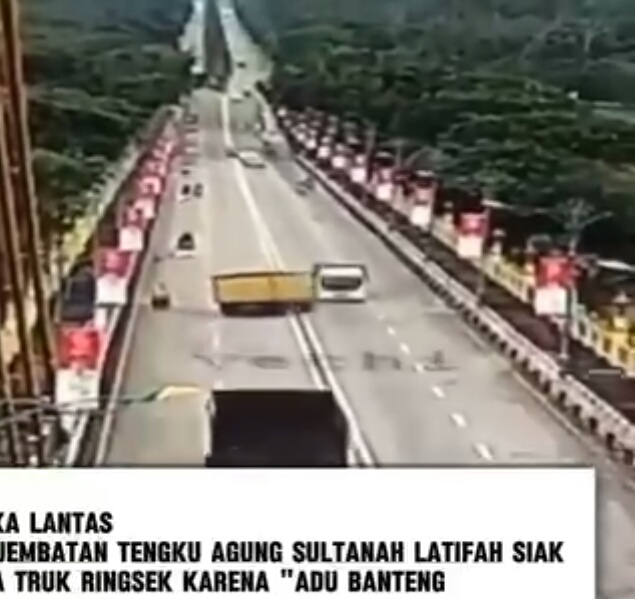 Dari pantauan kamera cctv jembatan, tampak truk berwarna kuning dari arah Siak-Mempura melaju dengan kecepatan sedang, dan dari arah berlawanan terlihat truk berwarna putih. Ketika hendak melaju tampak tiba-tiba truk berwarna kuning