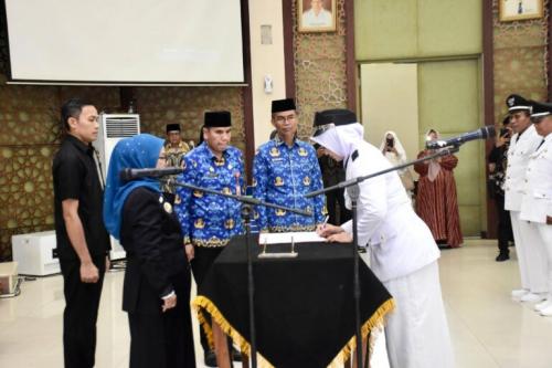 Kamis, 17-04-2025 - 20:05:29 WIB Mediasindonews.com I Kampar – Wakil Bupati Kampar, Dr. Hj. Misharti, S.Ag, M.Si melaksanakan pengambilan sumpah jabatan dan pelantikan 12 Pj Kepala Desa (Kades) Lingkup Kabupaten Kampar yang berlangsung di Aula Kantor Bupati Kampar. Kamis, (17/4/2025).