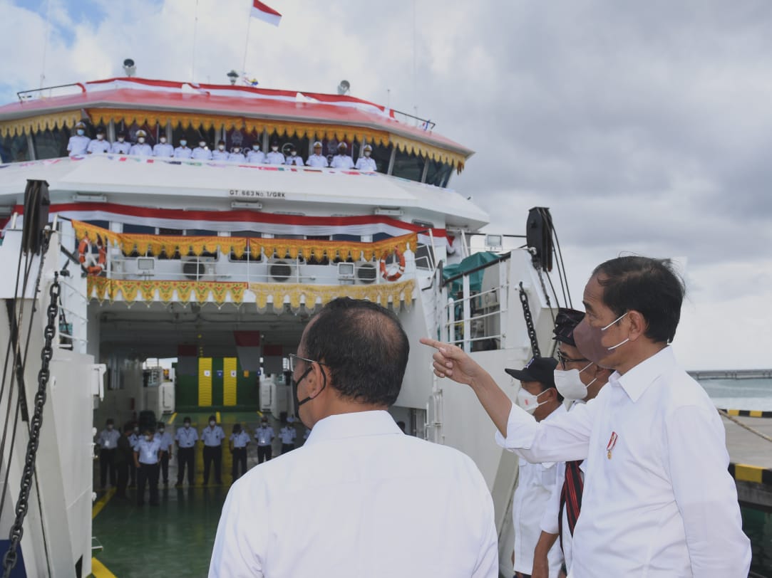 Mediasindonews.com | Sulawesi Tenggara - Presiden Joko Widodo meresmikan tiga pelabuhan penyeberangan dan satu kapal motor penumpang (KMP) di Dermaga Rakyat Wanci, Kabupaten Wakatobi, Provinsi Sulawesi Tenggara, pada Kamis, 9 Juni 2022. Presiden berharap agar pelabuhan dan KMP yang telah diresmikan dapat mempermudah dan mendukung aktivitas masyarakat."Hari ini tiga pelabuhan penyeberangan di KSPN Wakatobi, yaitu Pelabuhan Penyeberangan Kaledupa, Pelabuhan Penyeberangan Tomia, dan Pelabuhan