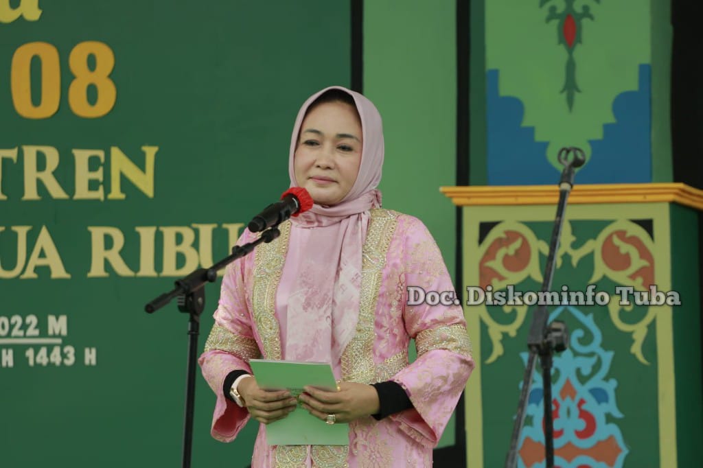 Mediasindonews.com | Tulang Bawang - Ponpes Miftahul Huda Dua Ribu Banjar Agung gelar Pengajian Akbar Haflah Akhirussanah dan wisuda angkatan ke-08 ponpes Miftahul Huda Dua Ribu di Halaman Ponpes Miftahul Huda Dwi Warga Tunggal Jaya Banjar agung, Minggu (5/6/2022).Bupati Tulang bawang Dr. Hj. Winarti, SE, MH hadir pada acara tersebut dengan di dampingi oleh anggota DPRD Kabupaten Tulang Bawang Inez Septia Saputri, para Pejabat Pimpinan Tinggi Pratama dilingkup Pemerintah Kabupaten Tulang