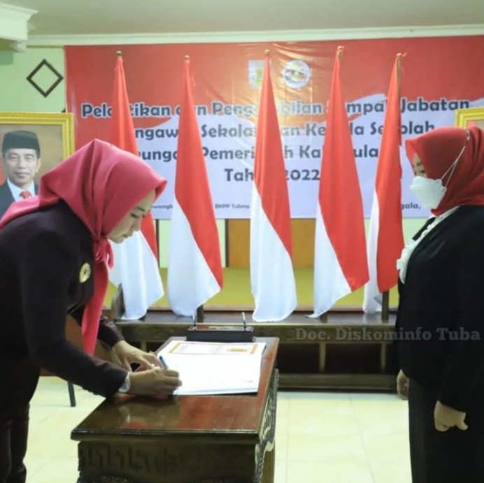 Mediasindonews.com | Tulang Bawang - Bupati Tulang bawang Dr.Hj.Winarti,SE.MH Laksanakan Penataan Jabatan Kepala Sekolah dan Jabatan Pengawas Se-Kabupaten Tulang Bawang.Adapun Penataan jabatan tersebut berlangsung di aula Gedung Islamic Center Menggala Tulang bawang pada pagi Jumat (03/06/2022) kemarin.Total 119 PNS yang dilantik dalam perhelatan tersebut dengan rincian sebagai berikut : Kepala sekolah Definitif berjumlah 23 orang (SD 15 orang, SMP 8 Orang),Roling 53 (SD 45 orang, SMP 8 orang)