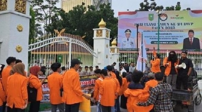 Desakan itu diungkapkan puluhan pengunjukrasa yang menamakan diri Kabinet Mahasiswa Sekolah Tinggi Ilmu Ekonomi (KM-STIE) di gerbang masuk kantor Gubernur Riau, Rabu (04/12/23) sore.