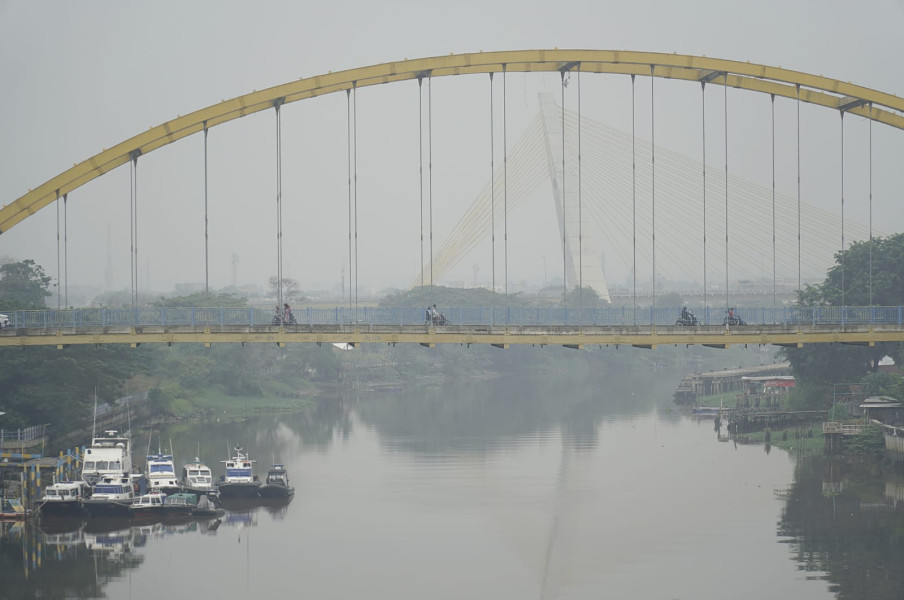 Jarak pandang pada pagi hari berkisar antara 2 sampai 5 kilometer dengan status udara kabur.