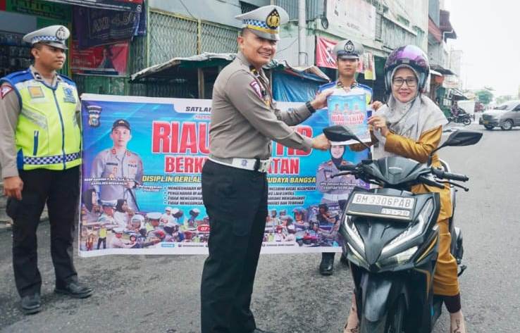 Satlantas Polres Rohil Bagikan 300 Brosur Riau Tertib Berkeselamatan di Bangko
