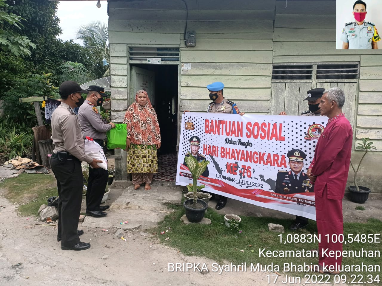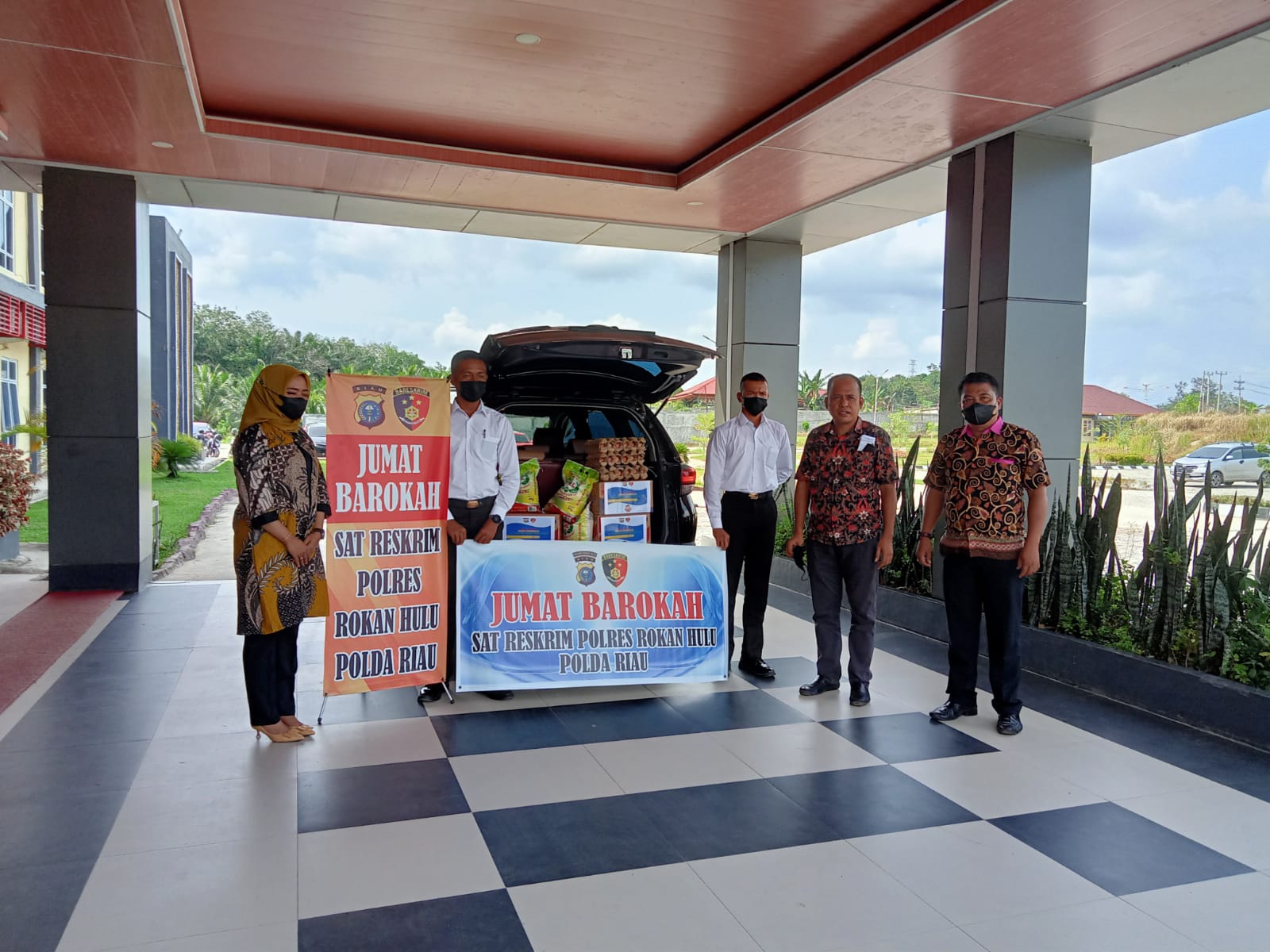 Mediasindo.com | ROKAN HULU - Sebagai bentuk humanisme dan kepedulian Polri pada Masyarakat kurang mampu dalam menyongsong HUT Bhayangkara Ke 76 Tahun 2022, Sat Reskrim Polres Rokan Hulu (Rohul) dipimipin AKP Buyung Kardinal SH MH melakukan kegiatan Baksos Jumat Barokah.Kegiatan baksos, berupa pemberian sembako kepada warga kurang mampu dilaksanakan di Dusun Sei Deras Desa Koto Tinggi Kecamatan Rambah, Jumat (10/6/ 2022) sekitar pukul 14.30 Wib.Baksos Jumat Barokah,
