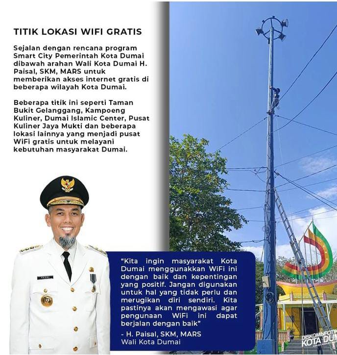 Sejalan dengan rencana program Smart City Pemerintah Kota Dumai dibawah arahan Walikota Dumai H.Paisal,SKM,Mars untuk memberikan akses internet gratis di beberapa