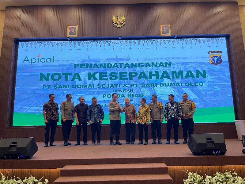 Mediasindonews.com I Dumai - Apical, pengolah minyak nabati terkemuka, melalui unit bisnisnya di Dumai, PT Sari Dumai Sejati (SDS) dan PT Sari Dumai Oleo (SDO) bersinergi dengan Kepolisian Daerah (Polda) Riau. Mereka melangsungkan penandatanganan nota kesepahaman atau MoU mengenai Pengamanan Objek Vital Nasional (Pamobvitnas), Rabu, 23 Oktober 2024.