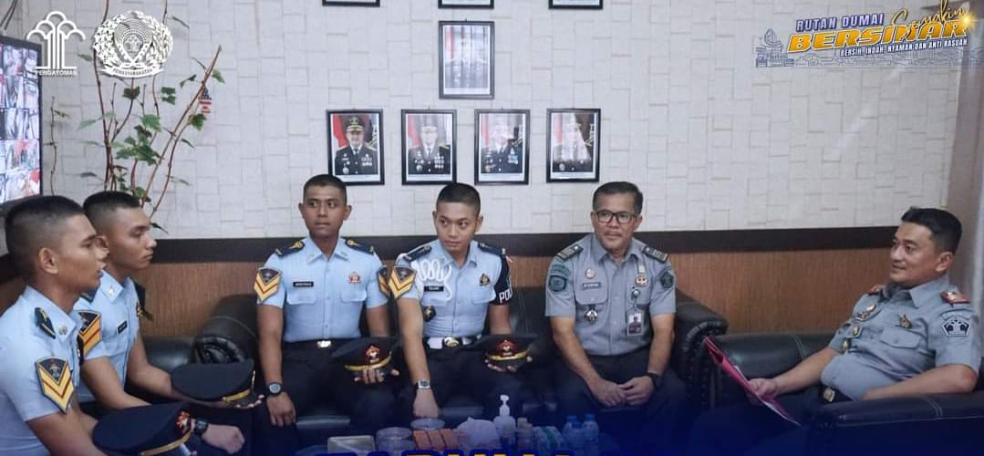 Mediasindonews.com I Dumai - Kepala Rutan Kelas IIB Dumai, Bastian Manalu didampingi pejabat struktural menerima kehadiran 4 Taruna Politeknik Ilmu Pemasyarakatan (POLTEKIP) yang akan melaksanakan Praktek Kerja Lapangan (PKL) di Rumah Tahanan Kelas IIB Dumai, Selasa (11/6).