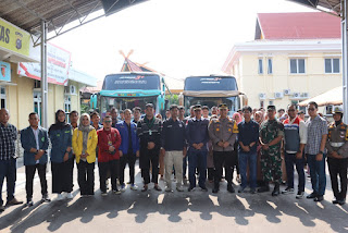 Mediasindonews.com | Dumai - Kapolres AKBP Dhovan Oktavianto, S.H, S.I.K, M.Si melepas perjalanan mudik gratis Hari Raya Idul Fitri 1445 Hijriyah/2024 Masehi yang disponsori oleh Pertamina dengan tujuan Pulau Rupat Kabupaten Bengkalis, Kota Medan Provinsi Sumatera Utara dan Kota Padang Provinsi Sumatera Barat, Sabtu (6/4/2024) di Halaman Mapolres Dumai Jalan Jendral Sudirman No. 01 Kelurahan Buluh Kasap Kecamatan Dumai Timur.