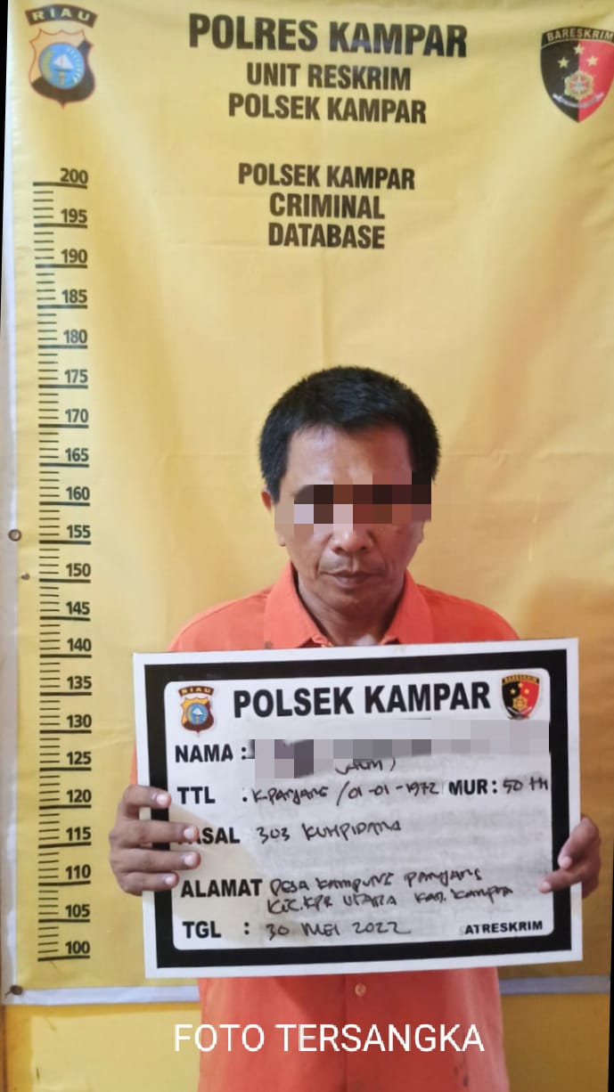 Mediasindonews.com | KAMPAR- Jajaran Polsek Kampar berhasil meringkus pelaku judi tebak angka Online Sydney di warung kopi, pada Senin (30/05/2022) sekira pukul 11.00 Wib.Pelaku adalaj KH alias B (53) warga Desa Kampung Panjang, Kecamatan Kampar Utara, ia di ringkus sedang berada di warung kopi yang terletak di pinggir jalan Dusun II Desa Kampung Panjang Kecamatan Kampar Utara. Dari tangannya berhasil diamankan barang bukti Hp Merek Samsung Warna Hitam yang berisi foto hasil rekap yang diduga