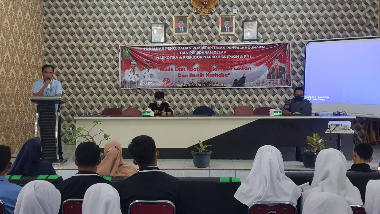 Mediasindonews.com | BANGKINANG - Sat Resnarkoba Polres Kampar tidak hanya menangkap pelaku Narkoba saja, kali ini Satresnarkoba Polres Kampar juga sosialisasi pencegahan, pemberantasan, penyalahgunaan dan peredaran gelap narkotika & prekursor (P4GN & PN) Selasa Pagi (24/5/2022) sekira pukul 09.00 Wib. Sosialisasi ini langsung dipimpin Kapolres Kampar yang di wakili oleh Kasat Narkoba Polres Kampar AKP Daren Maysar SH, yang dilaksanakan di Aula SMKN 1 Bangkinang, adapun kegiatan