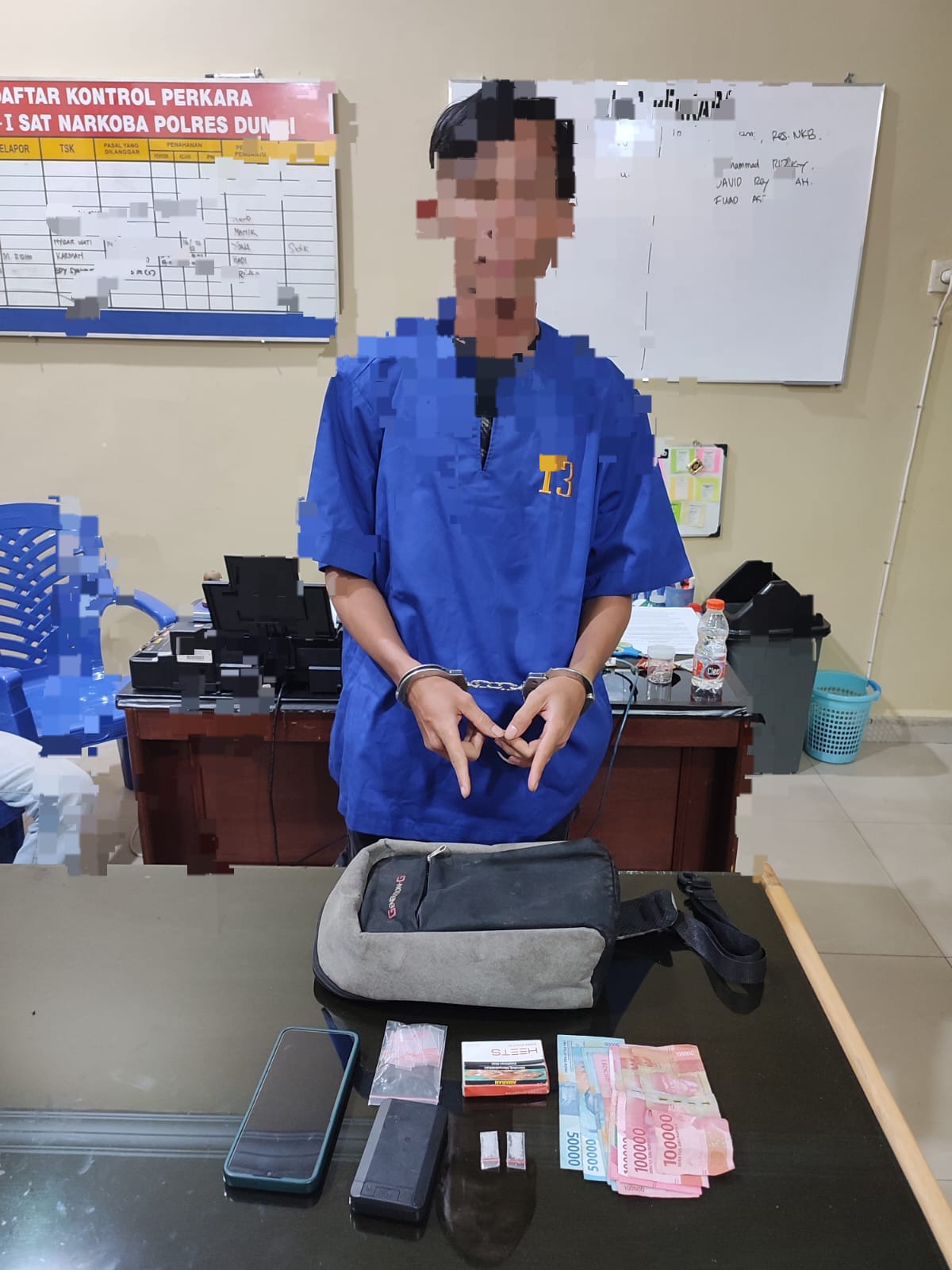 Penangkapan ini dilakukan oleh Tim Opsnal Unit II Sat Res Narkoba Polres Dumai yang dipimpin Kasat Narkoba Iptu Mardiwel, S.H, M.H dan didampingi Kanit II Sat Res Narkoba Iptu Rudi Artono Sitinjak, S.H.