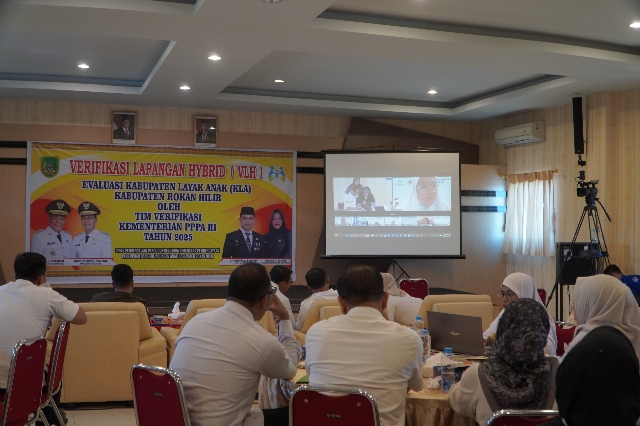 Mediasindonews.com I Rohil --Pemerintah Kabupaten Rokan Hilir (Rohil) melalui Dinas Pengendalian Penduduk Keluarga Berencana Pemberdayaan Perempuan dan Perlindungan Anak (DP2KBP3A) melaksanakan kegiatan Verifikasi Lapangan Hybrid (VLH) Evaluasi Kabupaten Layak Anak (KLA) Tahun 2025 oleh Kementrian Pemberdayaan Perempuan dan Perlindungan Anak (Kemen PPPA), Rabu (16/4/2025) di Aula salah satu hotel yang berada di Kota Bagansiapiapi, Rohil Provinsi Riau.
