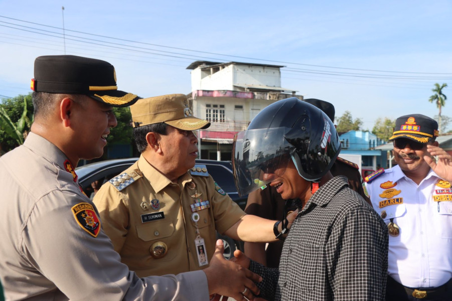 Bupati Dan Kapolres Rokan Hulu, Bagikan helm Gratis Dalam Rangka Operasi Patuh Lancang Kuning 2024