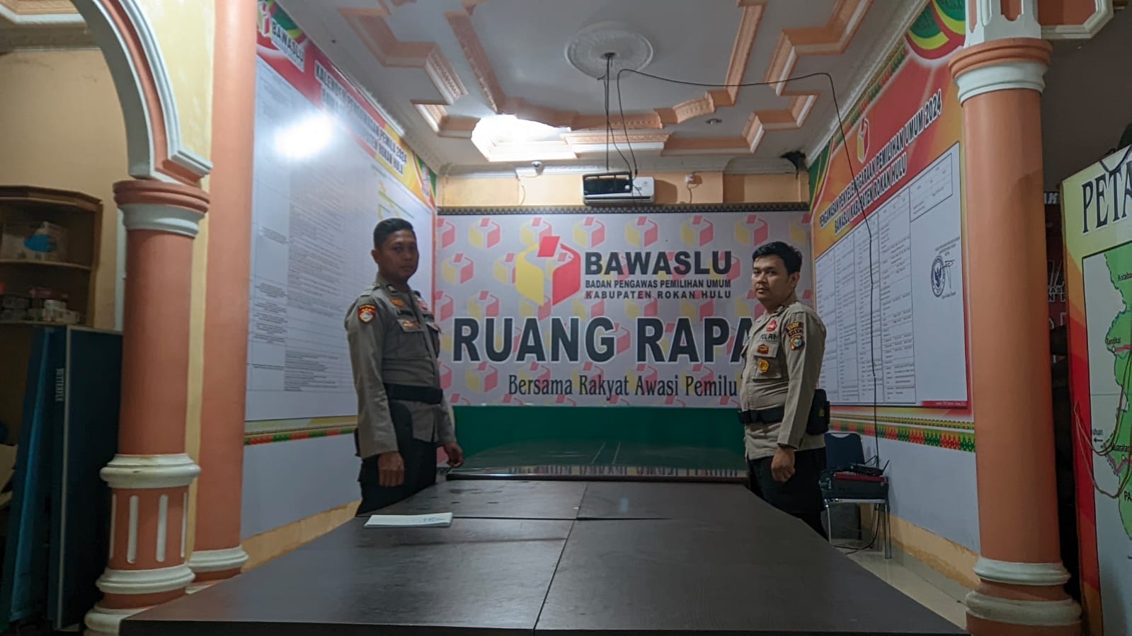 Kapolres Rohul AKBP Budi Setiyono SIK MH melalui Padal PAM AKP Syafaruddin SH menyampaikan, Polri melakukan pengecekan CCTV, Pengecekan Ruangan, pengecekan buku mutasi dan HT piket Kantor Bawaslu