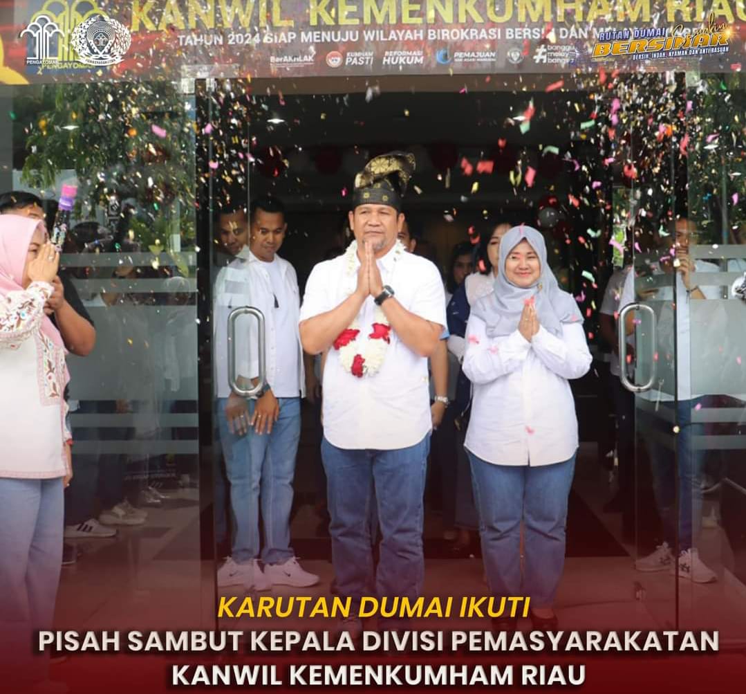 Mediasindonews.com I Dumai – Kepala Rutan Dumai, Bastian Manalu turut mengikuti pisah sambut Kepala Divisi Pemasyarakatan Kanwil Kemenkumham Riau dari Muhammad Ali Syeh Banna, yang sebelumnya menjabat posisi tersebut, resmi beralih tugas sebagai Kepala Divisi Pemasyarakatan Kanwil Kemenkumham DIY dan kini digantikan oleh Ricky Dwi Biantoro, yang sebelumnya bertugas di Sulawesi Tengah dengan jabatan yang sama.